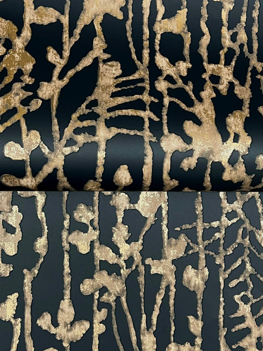 York Wallcoverings Ronald Redding Ginkgo Silhouette Black & Gold Cork Wallpaper Beach Traditional Black & Gold Wallpaper - VR1512
