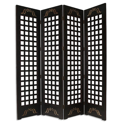 84" Black Solid Wood Folding Four Panel Screen Room Divider