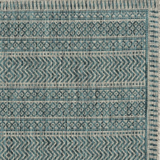 8' Teal Blue Southwestern Indoor Outdoor Area Rug