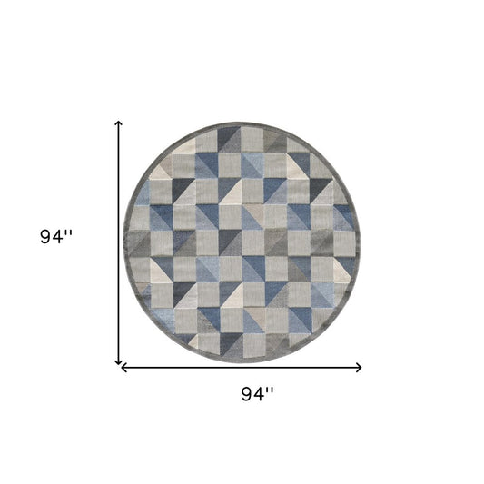 8' Round Blue And Gray Round Geometric Stain Resistant Indoor Outdoor Area Rug