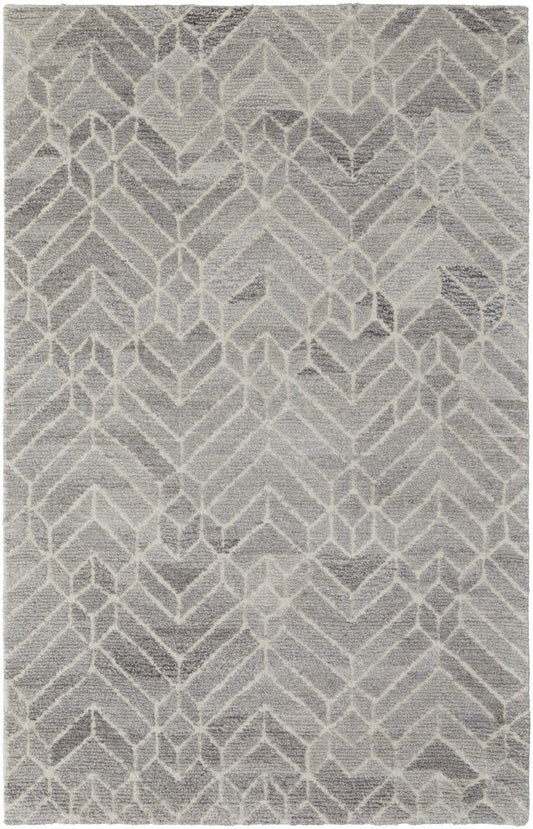 5' X 8' Beige Ivory and Gray Wool Geometric Hand Tufted Area Rug