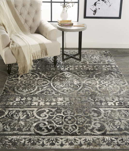 5' X 8' Gray Floral Indoor Outdoor Area Rug