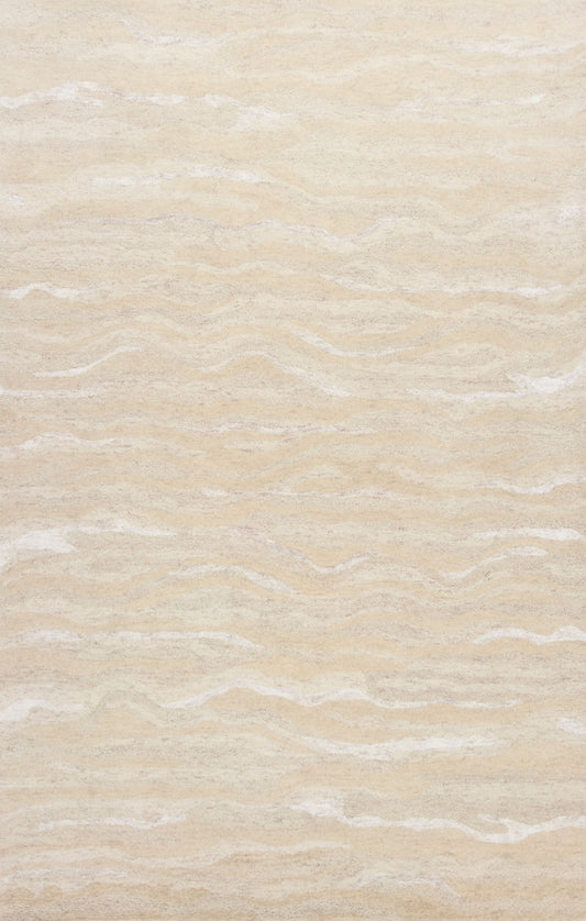 2' X 4' Sand Beige And Ivory Wool Geometric Hand Tufted Area Rug