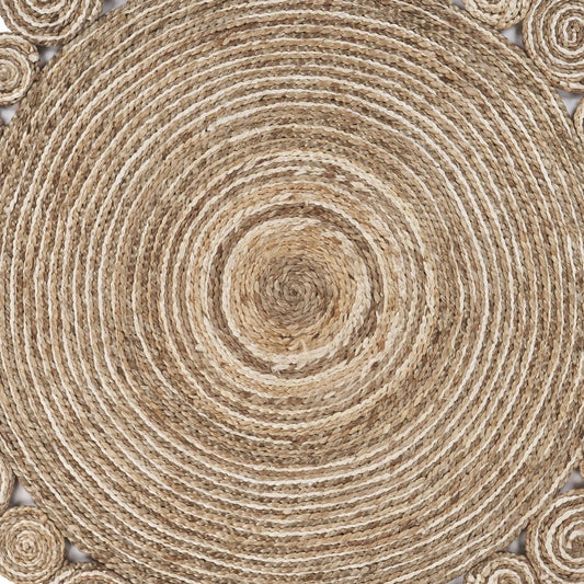 Reduced Price5' Beige Jute Abstract Geometric Hand Braided Round Rug