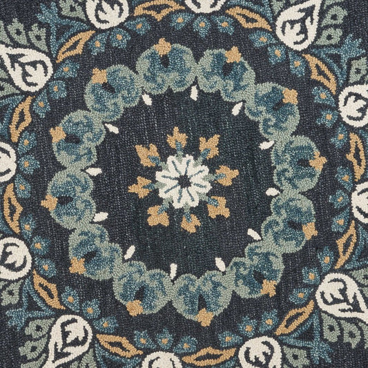 6' Black and Tan Round Wool Floral Medallion Hand Tufted Area Rug