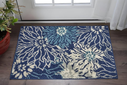 6' X 9' Navy Blue And Ivory Floral Area Rug