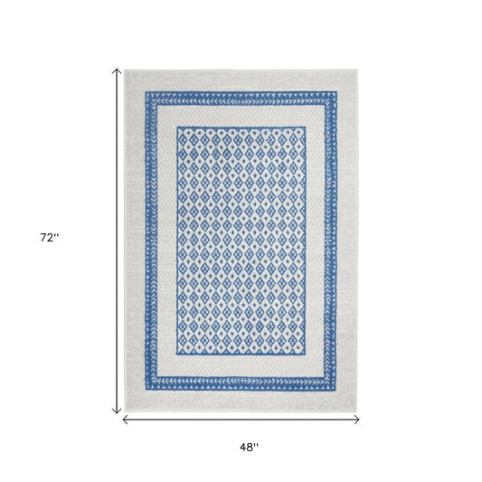 4' X 6' Blue And White Geometric Area Rug