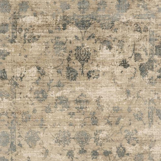 7' X 9' Beige And Blue Oriental Distressed Area Rug
