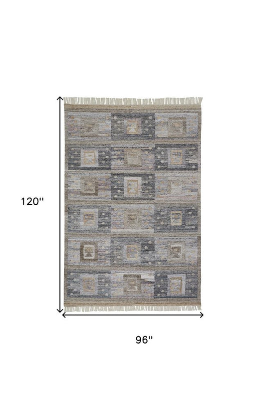 8' X 11' Gray And Black Wool Geometric Hand Tufted Area Rug