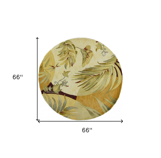 8' X 10' Sage Taupe And Green Wool Tropical Botanical Hand Tufted Area Rug