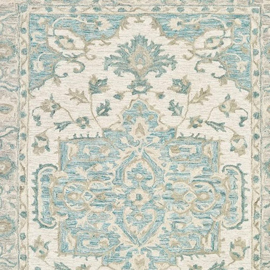 5' X 8' Blue Wool Floral Medallion Hand Tufted Area Rug