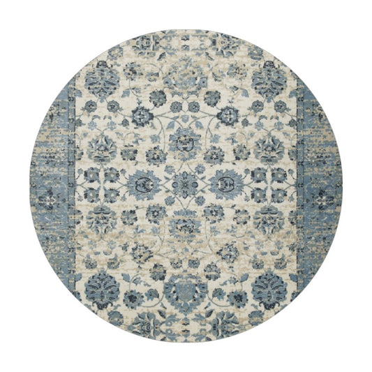 7' X 10' Blue and Ivory Floral Power Loom Distressed Non Skid Area Rug