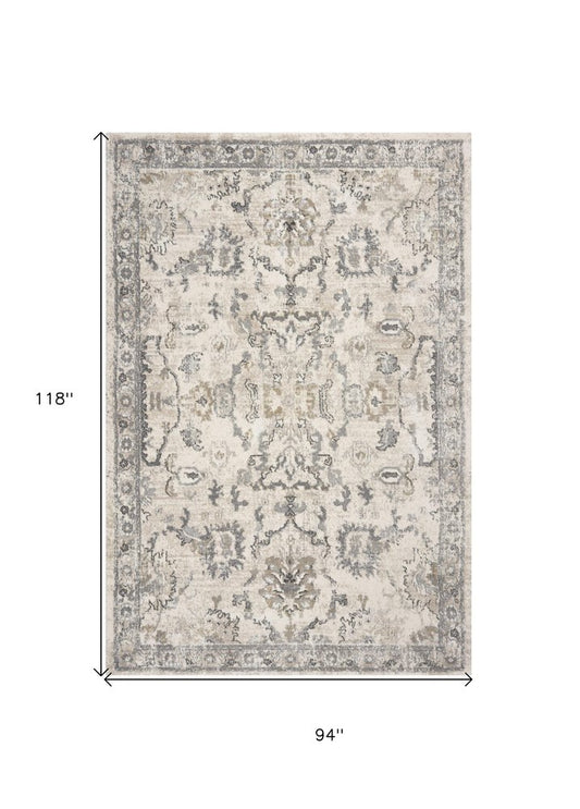 8' X 10' Ivory And Gray Floral Medallion Area Rug