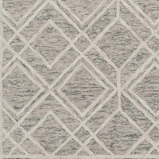 2' X 4' Gray And Ivory Wool Geometric Hand Tufted Area Rug