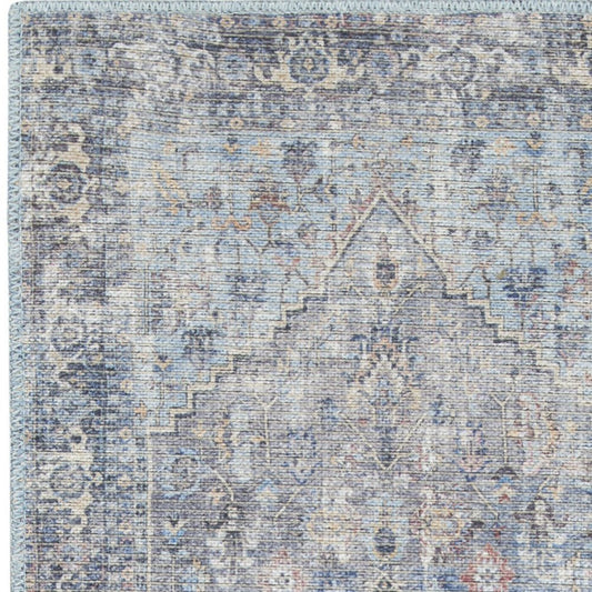 2' X 6' Light Blue Oriental Power Loom Distressed Washable Runner Rug