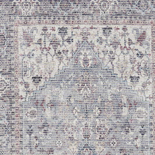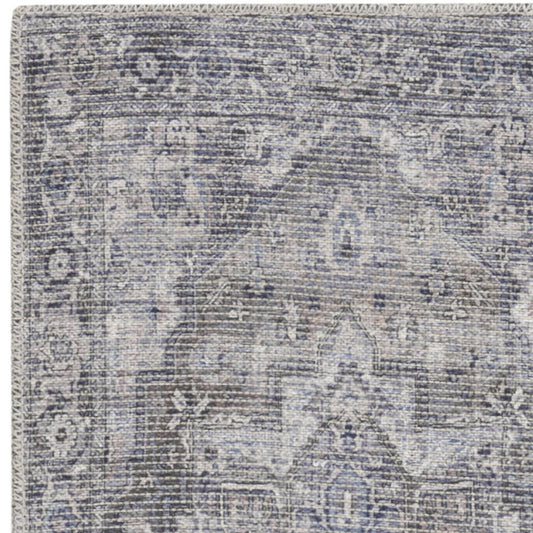 2' X 6' Light Grey And Blue Oriental Power Loom Distressed Washable Runner Rug