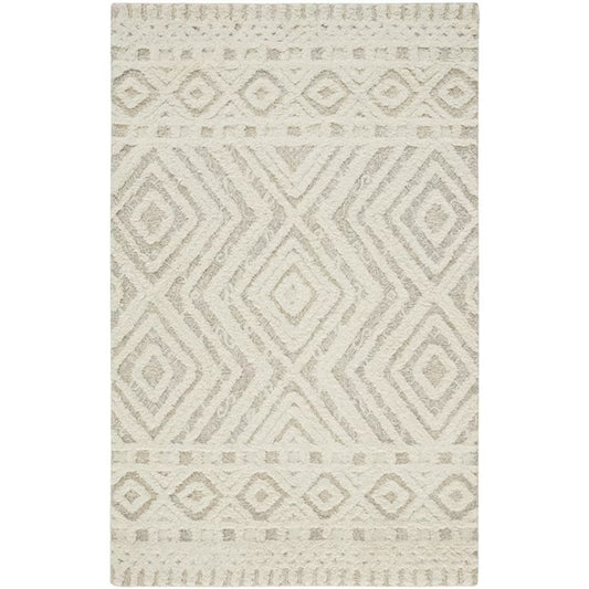 4' X 6' Ivory Taupe And Gray Wool Geometric Tufted Handmade Stain Resistant Area Rug