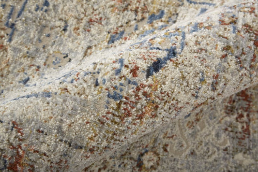 2' X 3' Beige Grey Blues Orange Yellow And Ivory Abstract Power Loom Stain Resistant Area Rug