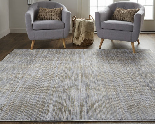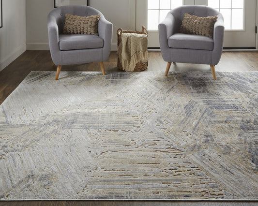 8' X 10' Taupe Silver and Tan Abstract Power Loom Non Skid Area Rug