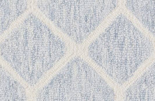 5' X 8' Blue And Ivory Wool Geometric Tufted Handmade Stain Resistant Area Rug