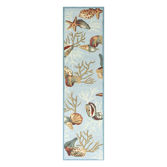3' X 5' Blue Gray And White Fish and Coral Hand Hooked Area Rug