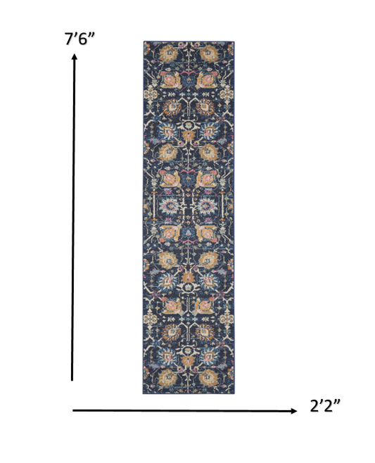 5' X 7' Navy Blue Floral Power Loom Area Rug