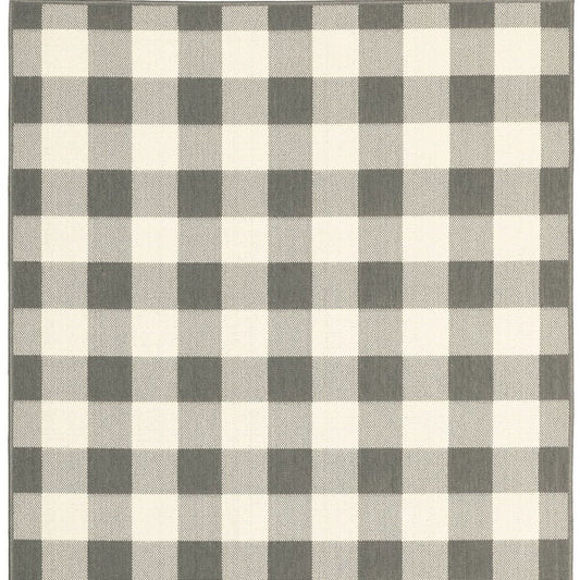 8' Gray And Ivory Indoor Outdoor Runner Rug