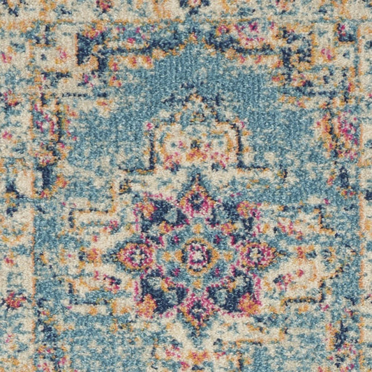 8' Teal And Ivory Medallion Distressed Runner Rug