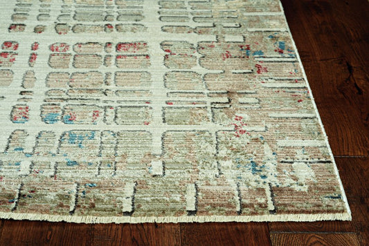 2' X 8' Ivory Grey Blue And Taupe Abstract Power Loom Stain Resistant Runner Rug