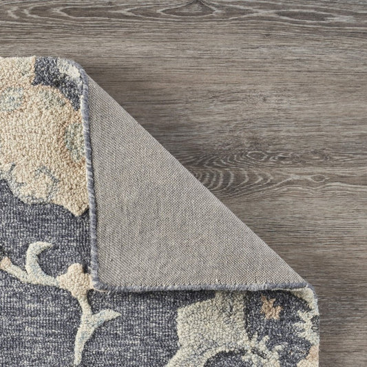 5' X 7' Gray And Light Gray Wool Floral Medallion Hand Tufted Area Rug