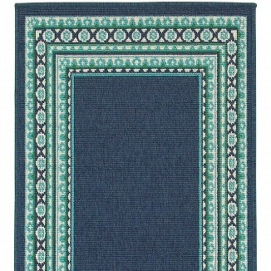 2' X 8' Blue and Green Indoor Outdoor Area Rug