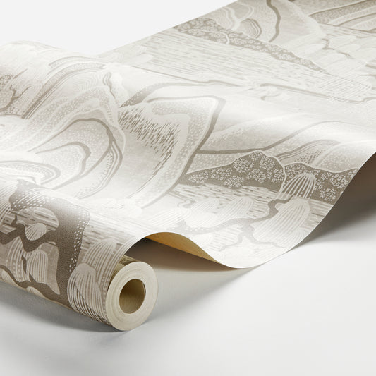 Seabrook Designs White Heron Water Lilies Floral Contemporary Beige Satin - EW12005