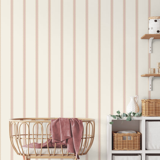 York Wallcoverings Advantage Bobbin Stripe Pink Scalloped Wallpaper Graphics Whimsical Pink Wallpaper - 4203-27576