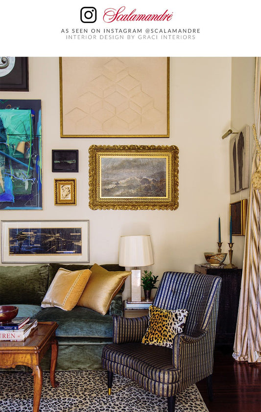 The Scalamandre Zebra pattern was designed in the 1940s by Flora Scalamandre for Gino of Capri , an Italian restaurant located in New York City. This unique design has a vivid red backdrop and depicts jumping zebras, which makes it quite appealing. It is said that Flora drew the zebras from recollection and sought inspiration from her visit to the Bronx Zoo, which adds to their charm. What began as a design for a single restaurant has now developed into one of the most well-known and long-lasting motifs in the world of interior design. Today, you can find zebra prints in all sorts of color palettes: bright reds, subtle neutrals, and even modern and fresh colors which can correspond to both contemporary and traditional interiors.