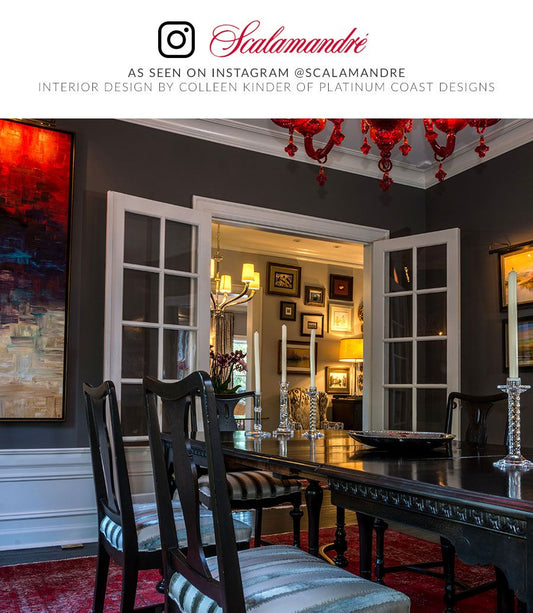 The Scalamandre Zebra pattern was designed in the 1940s by Flora Scalamandre for Gino of Capri , an Italian restaurant located in New York City. This unique design has a vivid red backdrop and depicts jumping zebras, which makes it quite appealing. It is said that Flora drew the zebras from recollection and sought inspiration from her visit to the Bronx Zoo, which adds to their charm. What began as a design for a single restaurant has now developed into one of the most well-known and long-lasting motifs in the world of interior design. Today, you can find zebra prints in all sorts of color palettes: bright reds, subtle neutrals, and even modern and fresh colors which can correspond to both contemporary and traditional interiors.