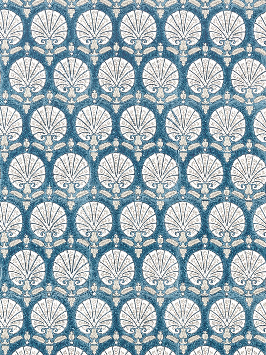 SCALAMANDRE KARANFIL BLOCK PRINT WALLPAPER BOTANICAL , FOLIAGE MEDALLION SMALL SCALE INDIGO - SC 0005WP88560 NEW SKU # SCWP885600005