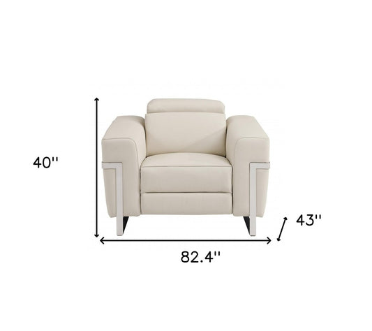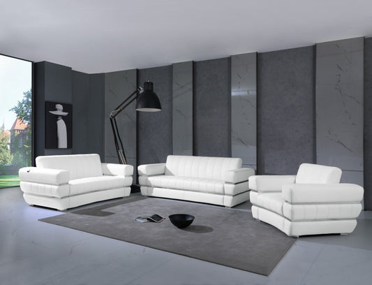 Three Piece Indoor White Italian Leather Five Person Seating Set