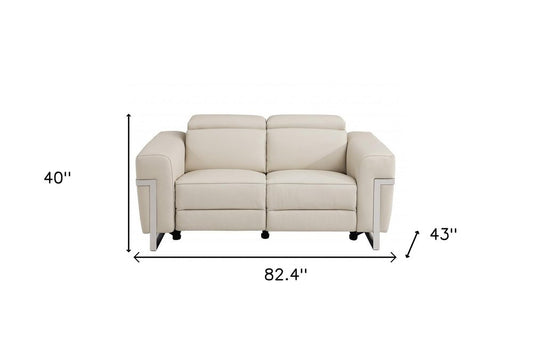 Two Piece Indoor Beige Italian Leather Five Person Seating Set