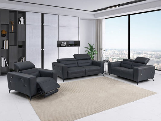 Three Piece Indoor Dark Gray Italian Leather Five Person Seating Set