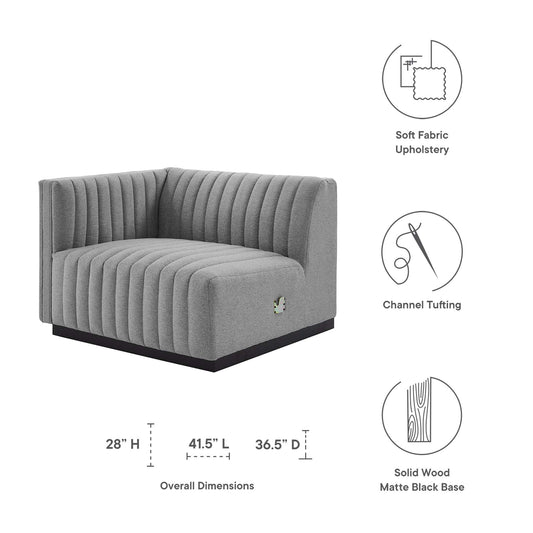 Modway - Conjure Channel Tufted Upholstered Fabric Right-Arm Chair by Modway Living Room Sofas and Armchairs Gray - EEI-5493-BLK-LGR