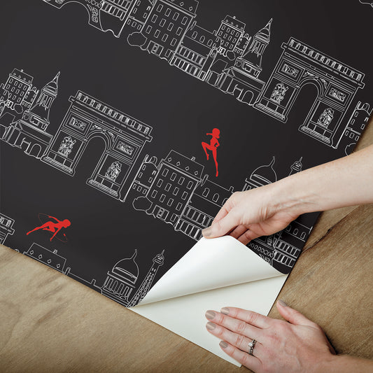 York Wallcoverings RoomMates Miraculous Ladybug Charming Paris Black Peel and Stick Wallpaper Kids Graphics Blacks Wallpaper - RMWS1303
