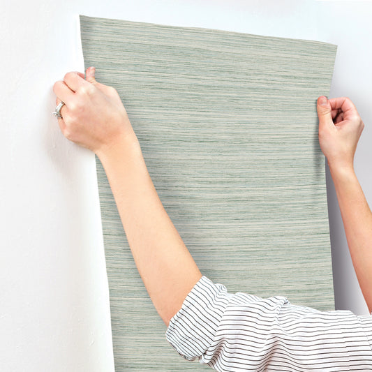 York Wallcoverings Artistic Abstracts Fountain Grass Jade Wallpaper Transitional Faux Grasscloth Blues - GO8303
