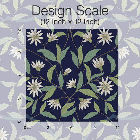 York Wallcoverings Antonina Vella Genevieve Harbor Blue Floral Trail Wallpaper Botanical Farmhouse Harbor Blue Wallpaper - VP1422