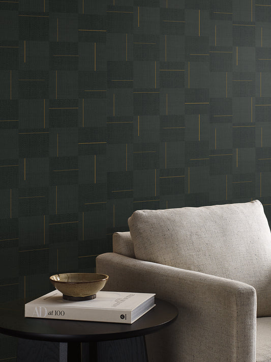 York Wallcoverings Signature Textures Resource Library Geo Block Weave Black Wallpaper Modern Geometrics Blacks - SI24905