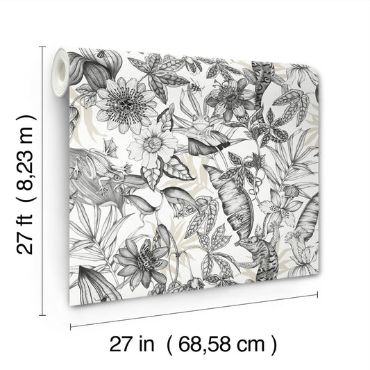 York Wallcoverings Blooms Rainforest White and Charcoal Wallpaper Animals Blacks Wallpaper - BL1703