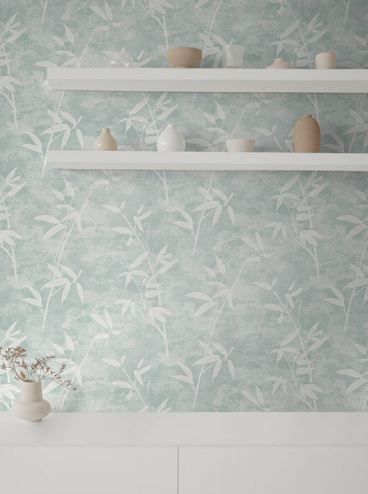 Seabrook Designs Japandi Style Honshu Bamboo Botanical Rustic Blue Matte - JP10902