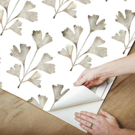 York Wallcoverings RoomMates Cat Coquillette Gingko Neutral Peel and Stick Wallpaper Botanical Neutrals Wallpaper - RMK12642PL