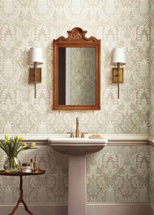 York Wallcoverings Rifle Paper Co. 3rd Edition Novelty Pineapple Damask Traditional Beiges - RF7485