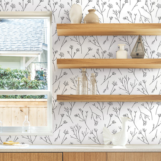 York Wallcoverings RoomMates Twigs Black Peel and Stick Wallpaper Modern Woods and Forests Blacks Wallpaper - RMK11675WP