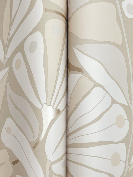 Seabrook Designs Etten Beaded Persei Palm Botanical Contemporary Beige Semi-Gloss - BD50003